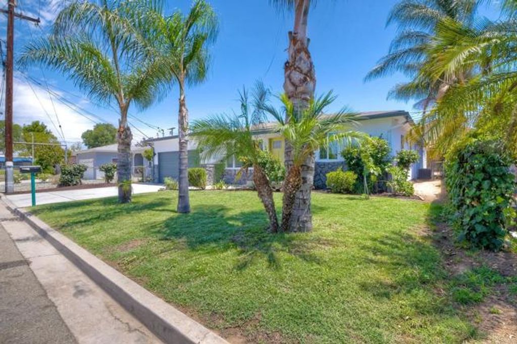 This home is a fabulous home with hard wood floors through out, and a large spacious yard with fruit trees and several sheds. The Kitchen is spacious and open and has tile flooring as well as in the bathrooms. The private master suite comes with its separate entrance, built-in surround system, and a round closet enclave. The master bath offers two separate vanities, a water-fall jacuzzi tub, a full tile shower enclosure with a rainfall shower head. The home offers dual-pane windows, remodeled hall bathroom, A/C Cooling System, spacious kitchen and a big yard with fruit trees, sheds and even a playhouse!! Through out the home there are updated lighting fixtures, newer bedroom closet doors, newer doors and newer ceiling fans. This home is adorable and will go fast!