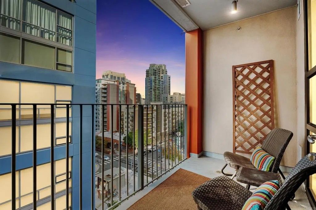 Downtown San Diego living! Ideally located in the popular Icon Building in East Village, enjoy the views/amenities in your new home. Super convenient, secured with an underground, permitted parking space right off street level. As you enter this nicely maintained one bedroom, one full bath condo, enjoy the open and bright spaciousness of the unit, with a wonderful kitchen, complete with refrigerator, microwave, dishwasher, gas stove and oven (convection too), pantry room, laundry closet with washer and dryer that all convey. Some amenities of the Icon building are a recently renovated lounge area with a full kitchen (available to reserve/rent) and a rooftop skybox with BBQs overlooking Petco Park. Enjoy the 1700 square foot gym and common areas including Community theater room with raised seating, featuring 135 inch HD screen, WiFi, Direct TV, Cox Cable, and Netflix capabilities. The renowned Icon Building has 24-hr front desk security and secure mail and package facilities. There are tons of restaurants, bars, and convenience stores just a short walk away. There is an Albertsons and a Ralphs supermarket about 10 minutes away on foot, and a Grocery Outlet just 2 minutes from your door. The Gaslamp Quarter is only a 10-minute walk, so theres no need to drive or Uber to your favorite spots. The amenities at Icon are amazing! Theres a fully equipped gym, a common area with a full-size kitchen, TVs, couches, and tables for reunions, conferences, or meetings. The views are incredibleyou can see the San Diego Harbor, Mexico, Coronado, Point Loma, and even PETCO Park. Watching Padres games or concerts from the rooftop is a huge bonus! Security here is top-notch, with roving watch standers checking the whole complex (and its surroundings) every 30 minutes. Cleaning staff are constantly maintaining all areas of the building, keeping everything spotless. The condo has a partial view of 10th Avenue, and the balcony is perfect for enjoying a quiet Sunday morning with a cup of coffee. You never had to turn on the A/C or heater, which keeps the electricity bill under $100 a month. The HOA fees cover water, gas, trash, and high-speed Wi-Fi (Google Fiber Webpass). The thick, soundproof windows also block out any noise from games, concerts, or the streets. See it to believe it!