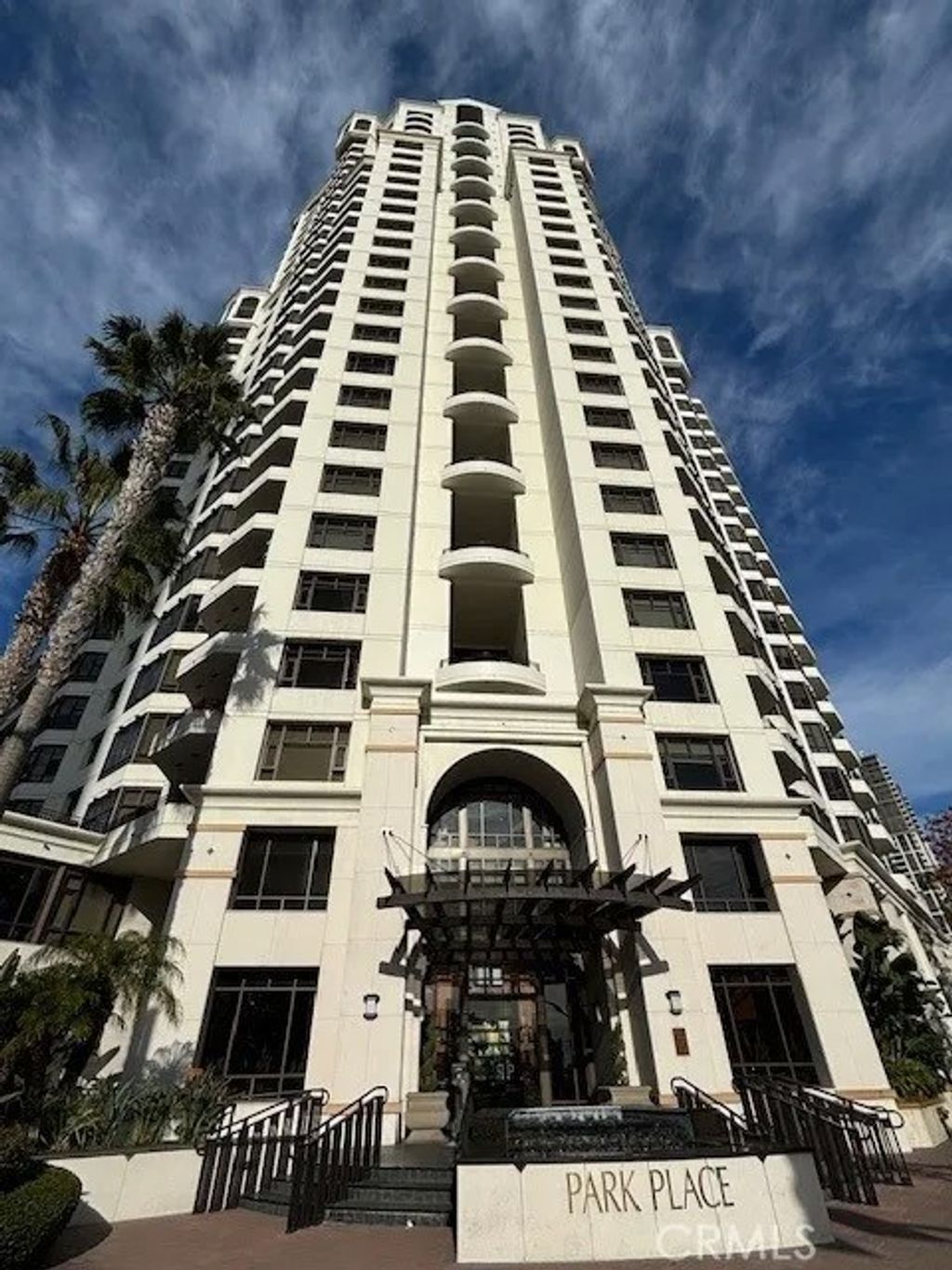 Welcome to Park Place LUXURIOUS downtown, convenient lobby level, single-story, high rise living! Seller says bring an offer on this beautiful condo as seller is willing to carry up to 600K! HOA includes EVERYTHING except Electricity! Elegant, stunning, single level, ground floor condo w/easy access to outside! 1639 square foot condo with expansive floor to ceiling windows affords abundant light and views from every room onto large, private patio complete with pavers, potted plants and city views where you can relax and enjoy all that Downtown San Diego, Marina area has to offer! Lobby is on same level and super convenient access for walks! 2 Bedrooms, 2 Bathrooms plus a Den/Office enclosed with wood framed glass walls, Living Room and Dining Room w/ elegant chandelier in a most sought after building with 24-hour full-time Security, Concierge, Guest Parking, Beautiful Pool and Spa as well as a well-appointed Fitness Gym INCLUDED IN YOUR MONTHLY HOA! Pets are welcome, 2 are allowed. Seller wants it sold! This beautiful condo is appointed with wood floors, lots of storage, a two-sided fireplace, in-room laundry with stackable washer/dryer (conveys). Kitchen boasts 4 burner gas cooktop, oven, microwave, granite countertops, sit at bar and abundant cabinets. Primary en-suite Bedroom/Bath is large and looks out onto the patio. 2 closets with mirrored wardrobe closet doors, large soaking bathtub & separate shower. Secondary bedroom is also large with one closet. Both Bedrooms have access into the patio which has a private gate to access the sidewalk and avoid the elevators, especially convenient for pet lovers! Included are 2 designated tandem parking spots as well as your personal gated storage area (aprox. 8 1/2' x 7' x 4') directly behind your tandem parking spots located in the subterranean parking levels. Park Place is conveniently located close and within walking distance to The Headquarters at Seaport Village, San Diego Convention Center, USS Midway, famous Gaslamp District, Little Italy and Petco Park to name a few. A short drive to beautiful Balboa Park where you can take in a day at the San Diego Zoo or peruse multiple Museums and dine at wonderful restaurants.