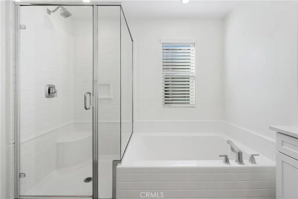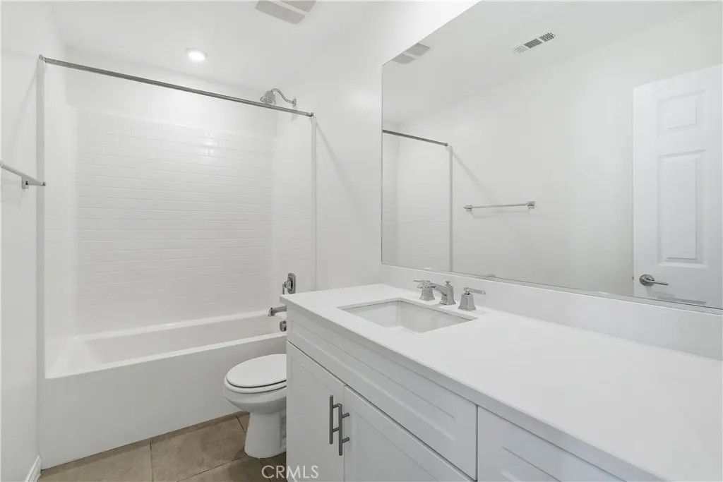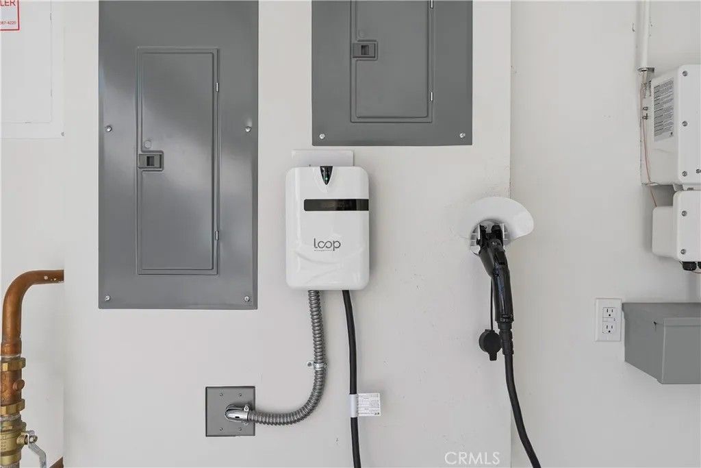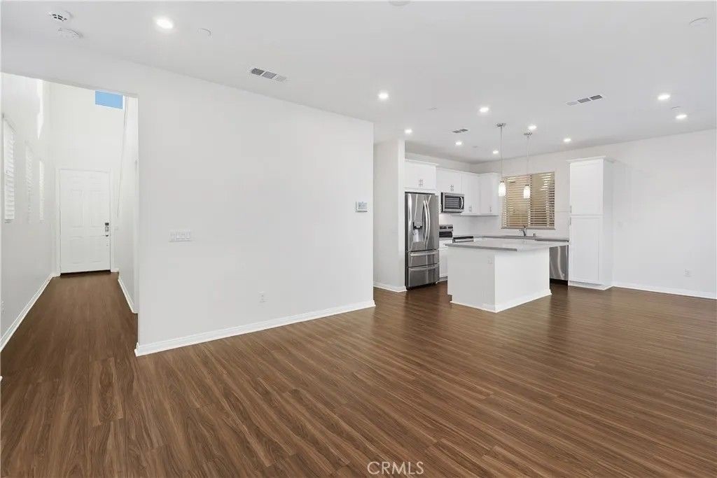 Look no further! This freshly painted, beautiful newer construction home is spacious and bright. Elegant entrance hall brings you to the open concept great room. A bright white kitchen comes furnished with stainless steel appliances. Dine at the breakfast bar or more formally in the spacious dining space off the kitchen and adjacent to the main living area. The backyard is located on the north side of the property. Keeping it shaded most of the day. It features beautiful pavers and the space is perfect for al fresco dining and enjoying the coveted California outdoor lifestyle. All three bedrooms are upstairs. The primary bedroom has an en suite bathroom with private water closet, extra-large walk-in closet, walk-in shower, and soaking bathtub. The two secondary bedrooms share a spacious full bathroom with a shower/tub combo. The laundry room is conveniently located upstairs. Lastly, the home features fully owned solar panels and an EV charger in the spacious two car garage; saving the owner money on monthly utilities. The community is immaculately maintained and features a picnic area, playground, and small dog park. Do not miss this opportunity!