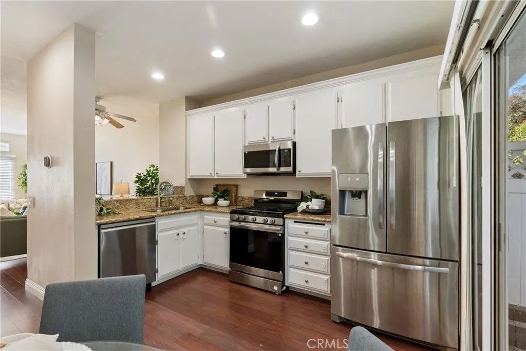 (Ask about a Seller Credit!) Welcome to Bridgeport Terrace, a sought-after gated community in the heart of Laguna Niguel. This two-story townhome features two bedrooms and a thoughtfully designed full bath with separated vanity areas, two private restrooms and a guest bathroom downstairs. This home offers rare privacy with no neighbors above or below. Step inside to a bright, open floor plan filled with natural light. The inviting living area provides flexible space for both a comfortable lounge setup and a dining areaperfect for everyday living or entertaining guests. Just beyond, the kitchen blends style and function with granite countertops, stainless steel appliances, pull-out storage, pantry, recessed lighting, and a convenient breakfast bar. From here, step out to your private, fenced patioan ideal spot to unwind, sip your morning coffee, take in the morning sun, host friends, or create a cozy outdoor retreat for kids or pets. Upstairs, youll find a secondary bedroom with a walk-in closet and vanity area, including a spacious primary suite with mirrored closet doors, a ceiling fan, and a dual-sink vanity in the ensuite bath. Thoughtful upgrades include indoor laundry with washer and dryer included, double-pane windows, central heating and air, and solar panelsmaking this the ONLY SOLAR EQUIPPED unit in the entire community for added energy savings. Parking is a breeze with a detached one-car garage complete with built-in storage and an automatic opener, along with an additional assigned parking space for guests. Bridgeport Terrace offers a resort-style lifestyle with gated access, a sparkling pool and spa, picnic areas BBQ, and beautifully landscaped grounds. HOA dues cover basic AT&T cable, trash service, exterior maintenance, landscaping, and structure insurance. FHA and VA approved. Ideally located near Dana Point beaches, Saddleback College, Mission Viejo Mall, award-winning schools, and with easy access to the 73 Toll Road and I-5 freeway, this home perfectly blends comfort, efficiency, and the Southern California lifestyle. This is one you truly have to see to appreciate!