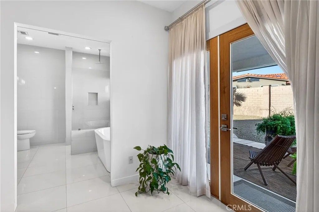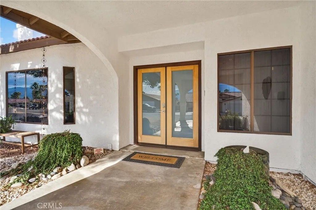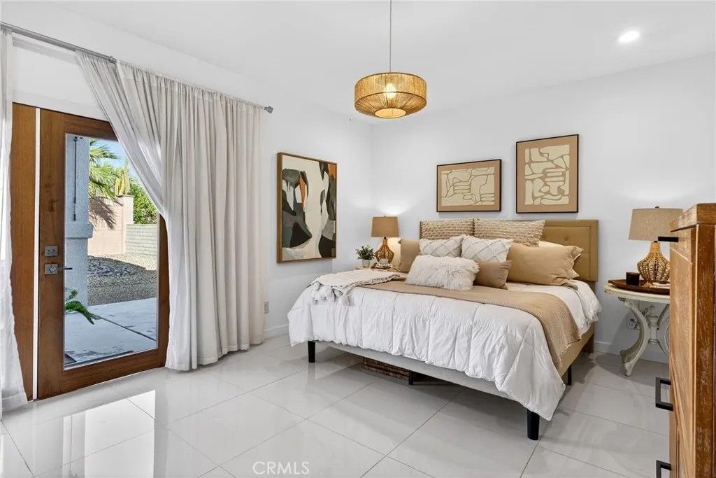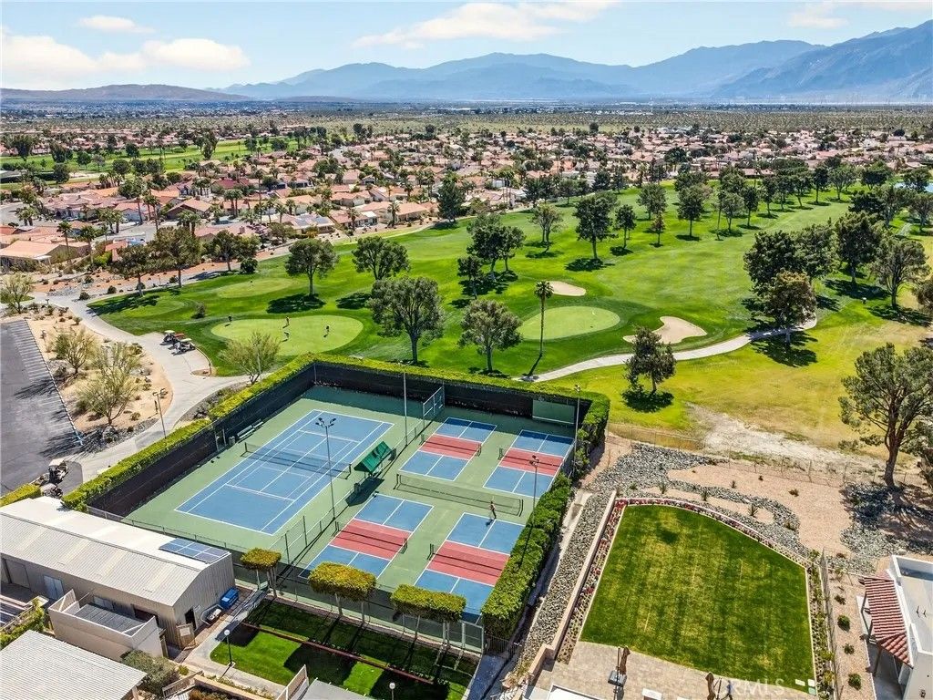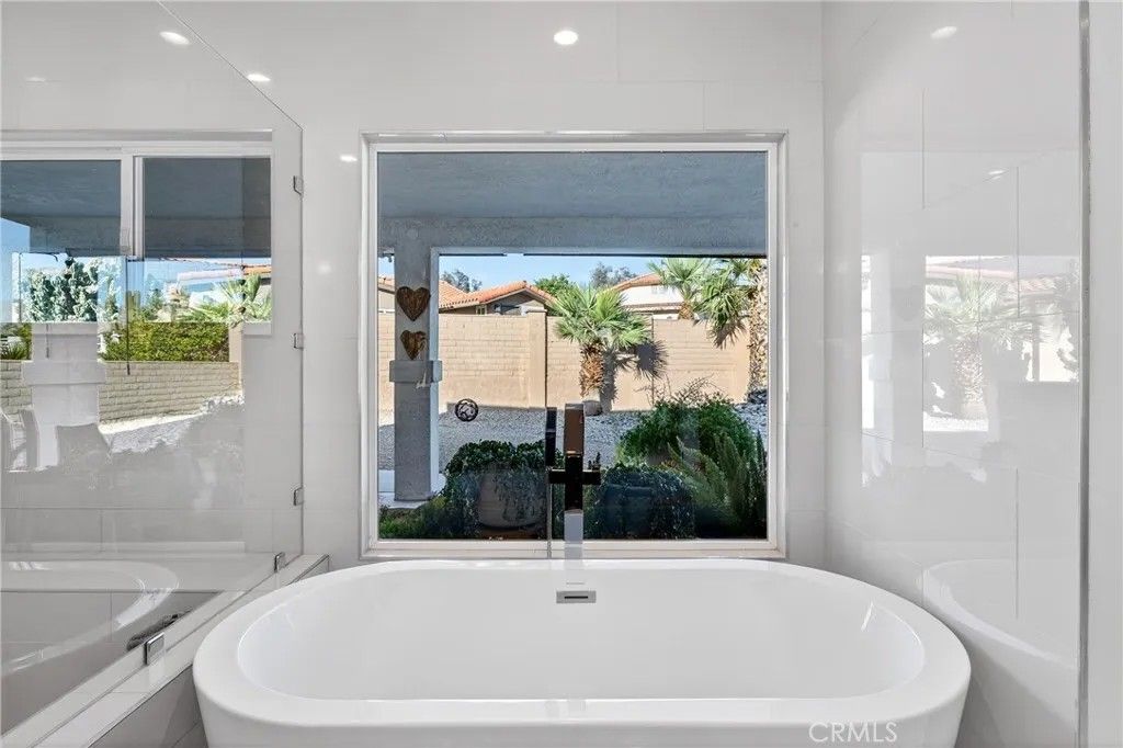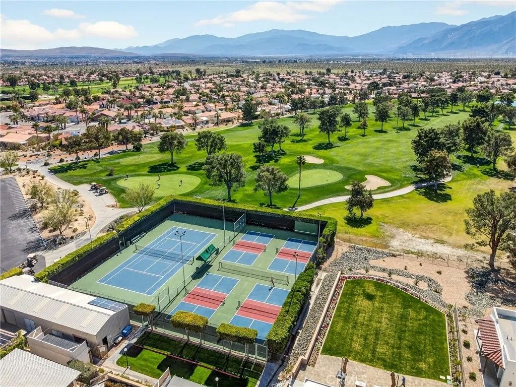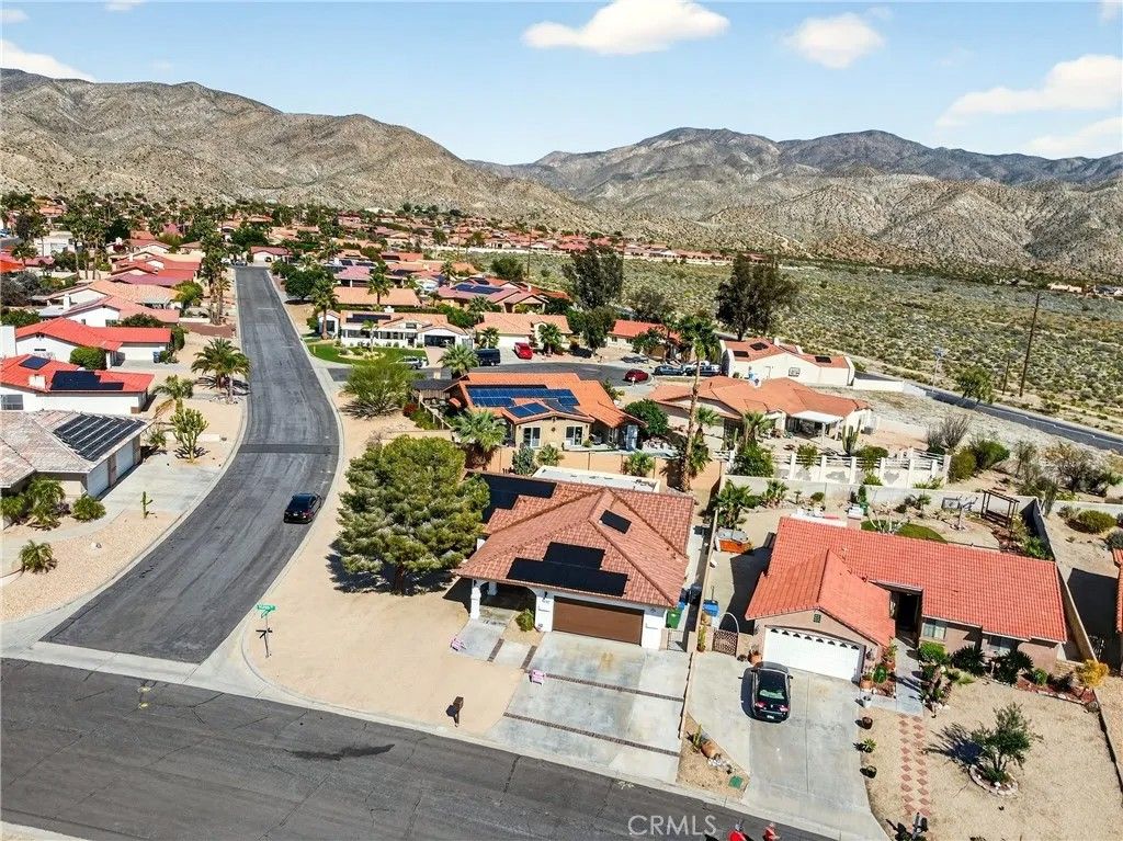 MOTIVATED SELLER.....COMPLIMENTARY UNLIMITED GOLF FOR TWO on the Ted Robinson award-winning golf course is included with HOA dues, and downtown Palm Springs is just 20 minutes awayoffering true resort living with convenient downtown access. This 1,822 square foot residence presents a contemporary, chic, and transitional aesthetic with seamless indoor-outdoor flow, creating an environment that feels both refined and welcoming. Soaring wood ceilings crown expansive living spaces filled with natural light, enhanced by an abundance of French doors and updated windows that frame dramatic mountain views throughout. High-gloss, large-format modern cream-colored tile floors beautifully reflect the light, pairing effortlessly with smooth-coat, flat museum-white walls and rich mahogany doors to create a clean, gallery-like backdrop ideal for modern living. The thoughtfully designed layout includes three bedrooms and two baths, anchored by a serene primary suite featuring a statement vessel tub and a generous walk-in closet. A fireplace defines the main living area, while a newer A/C system ensures year-round comfort and leased solar adds energy efficiency. Outdoors, the front, back, and side yards are thoughtfully curated with distinctive local desert rock landscaping, blending natural textures with low-maintenance design. The fully fenced backyard offers exceptional privacy along with mountain views, a solid covered outdoor patio, and a private jacuzziperfect for relaxing, entertaining, or stargazing beneath the expansive desert night sky. Mission Lakes Country Club is a 54-year-old country club with a rich history, located in unincorporated Desert Hot Springs approximately three and a half miles from town off of Indian Canyon and Mission Lakes Boulevard, surrounded by open desert and mountains on all sides and known for its clean, close-knit community atmosphere. Residents enjoy golf holes set at the highest elevations in the Coachella Valley, offering sweeping views across the valley floor. HOA amenities include an aquatic center, tennis and pickleball courts, a six-room inn, the Sand Wedge caf, and fine dining at the San Gorgonio Room, completing a truly resort-style lifestyle. The community does not allow short-term rentals under 30 days, preserving a quiet, residential environment. Select furnishings may be included by separate arrangement.