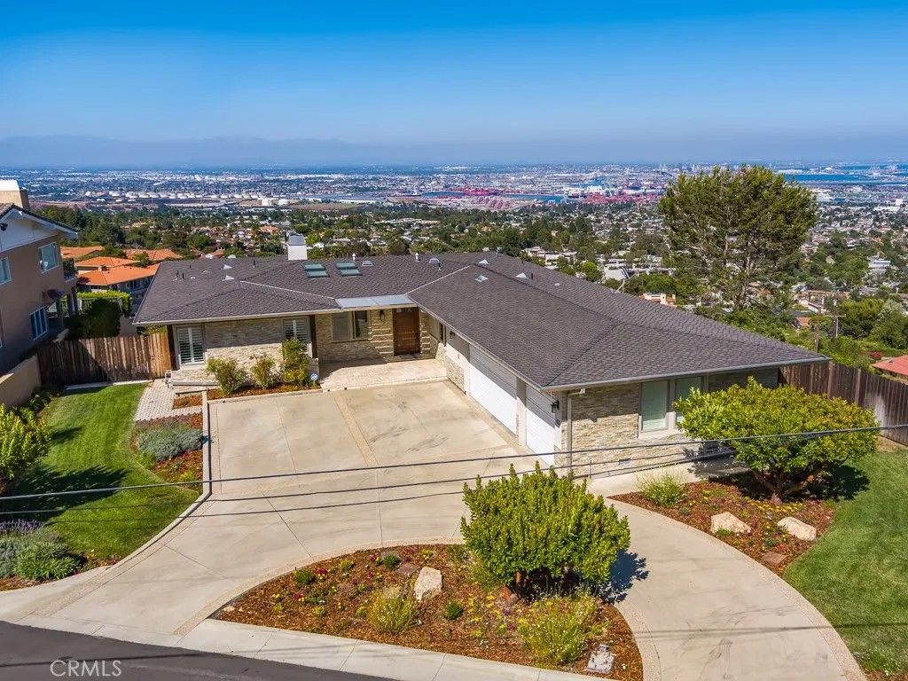 VIEWS, VIEWS, VIEWS! The Frank Lloyd Wrights architectural style home was completed in 2012, this unique home captures panoramic views of mountains, city lights, harbor, ocean and beyond. While keeping its simplicity, the open living not only enriches the secluded La Vista Verde Estates landscape, but also embraces natural lights with meticulous details. Skylights and plantation shutters showcase the masterpiece. Over 4500 Sq.Ft. living space with 10 foot high ceilings and 8 foot doors. Brazilian teak hardwood adorn the floors the 5 bedrooms and 4 bathrooms offer peaceful and quite resort living. You can entertain guests in both private and open sittings, formal dining room with ocean view and a wet bar. The gourmet kitchen is wrapped with a continuous wall of glass showcasing the incredible blue ocean. The entry level is self contained with garage access to the master suite, additional bedroom/office, kitchen, family room and den and they all opening to a 8 foot deep wrap around balcony creating the ultimate retreat. Exterior camera system as well as Sonos system with indoor and outdoor speakers are found through out the home. Outdoor adventurists will enjoy a pool size rear yard, covered patio with wood inlaid ceilings, oversized 3-car garage, and spacious side yard are ready for your boat and recreation vehicles. Trump National Golf Course and Terranea resort are just minutes away. Residents have access to the top-ranked Palos Verdes Schools such as Mira Catalina Elementary, Miraleste Intermediate, and your choice from two of the top ranked high schools in California. Opportunity does not come too often, come and claim the pride ownership of this luxury property.