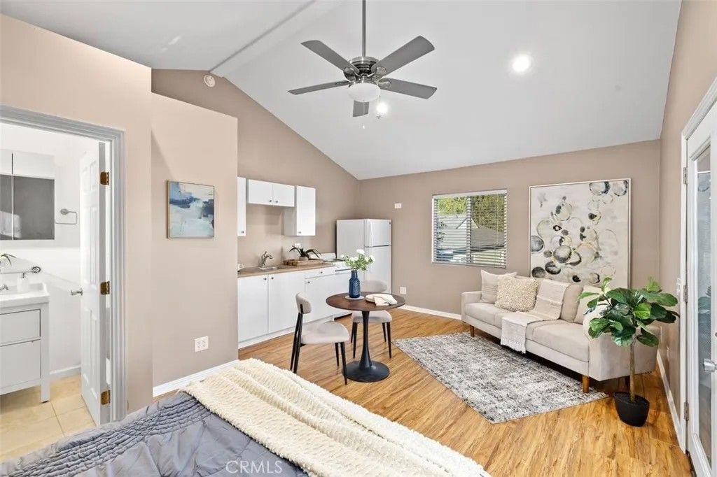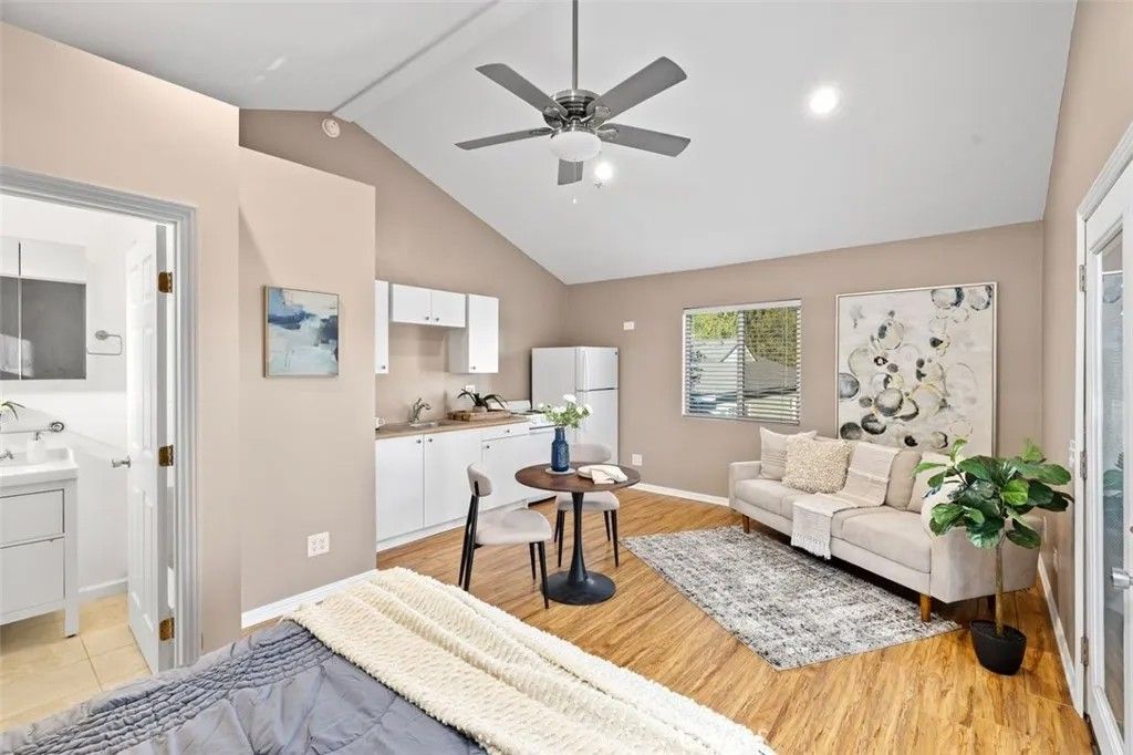 Welcome to this beautifully updated three-bedroom, two-bath ranch home featuring a detached ADU, sparkling pool, and spacious garage. Framed by a white picket fence and mature shade trees, the inviting front yard and patio set the tone for a home full of warmth and character. Step inside to a cozy living room anchored by a wood-burning fireplace, perfect for relaxing evenings. Thoughtfully renovated, the home features an open floor plan that flows seamlessly for everyday living and entertaining. At the heart of the home, the modern kitchen showcases a generous island with breakfast bar seating, new stainless-steel appliances, and abundant storageideal for cooking and gatherings. The adjacent dining area offers views of the backyard and opens to a covered patio, perfect for alfresco dining, watching the game, or lounging around the firepit. This versatile space can also be enclosed to create an additional family or media room. The front bedroom, currently used as an office, enjoys garden views. The second bedroom is bright and spacious, while the primary suite serves as a true retreatcomplete with a steam shower, large closet, fireplace, seating area, high ceilings, built-in cabinetry, and French doors leading to the pool and garden. Outside, the professionally landscaped garden provides beauty and privacy, while a spiral staircase leads to the detached ADUa complete guest residence with a full kitchen, dining and seating areas, bedroom, bathroom, and large deck with treetop and hillside views. Perfect for guests, extended family, or a rental opportunity. Situated near top schools, premier shopping, and renowned restaurants, this home offers the perfect blend of comfort, convenience, and California charm.