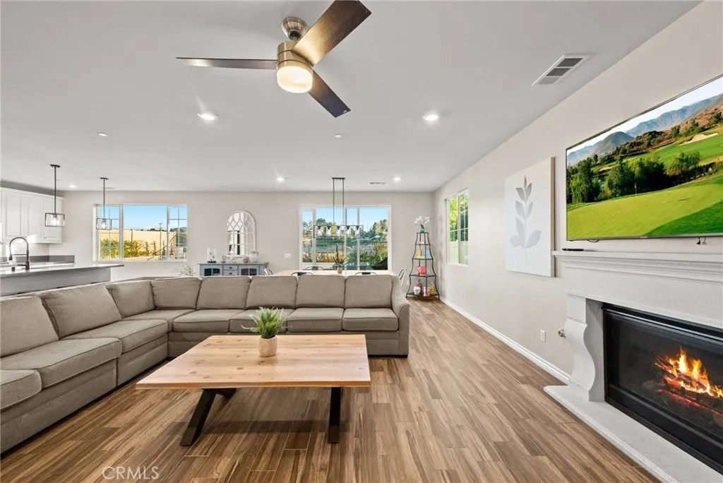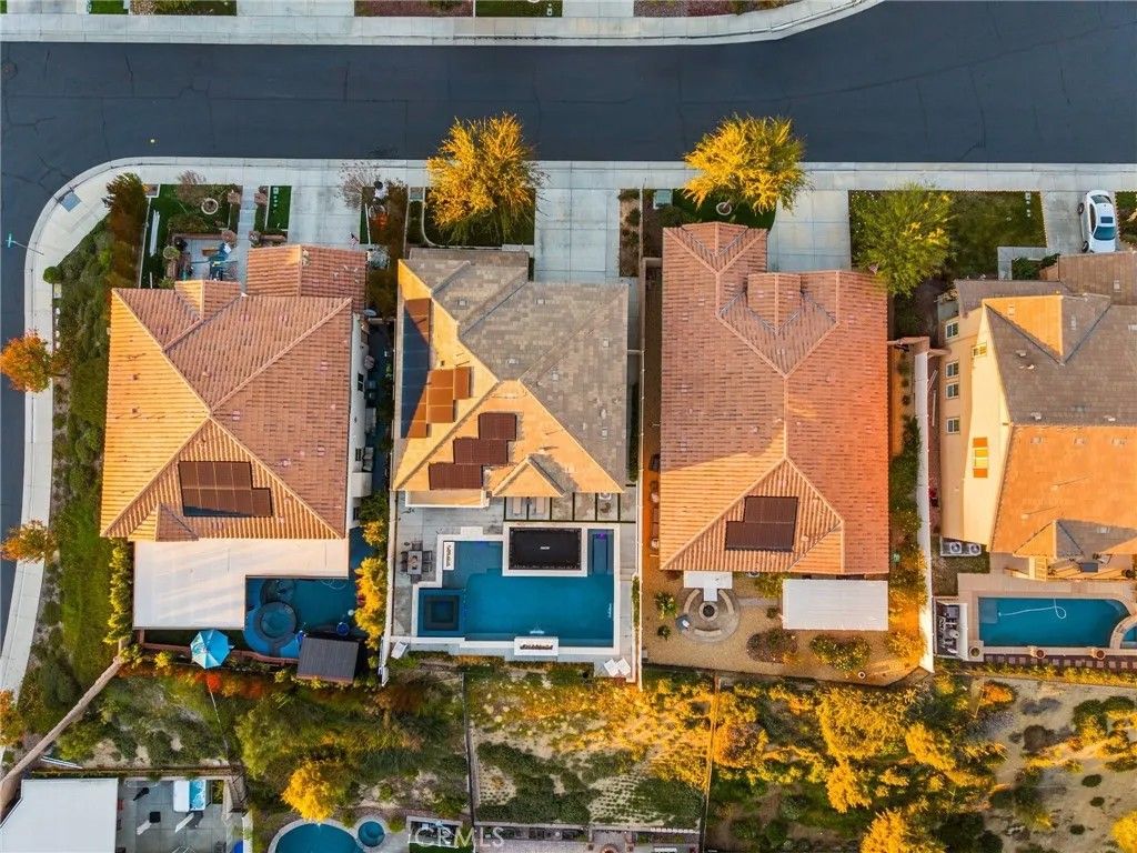 Discover a truly rare and exceptional offering in the heart of Temecula. This meticulously maintained residence, presented by its original owner, from its stunning resort-style backyard to its smart home features and unparalleled location, this property defines contemporary luxury and effortless California living. The open-concept design is anchored by premium, durable tile flooring that flows seamlessly throughout the entire main level, complemented by high-quality carpet reserved only for the stairs and comfortable upper-level bedrooms.The heart of the home is the Gourmet Chef's Kitchen, a masterpiece of function and style. The adjacent living room features a cozy Gas Fireplace, creating a warm, inviting space for relaxing evenings.This home offers incredible flexibility and convenience with a main level suite and full bathroom provides ideal accommodation for guests or multi-generational living. Upstairs, a spacious Loft area is surrounded by four generously sized additional bedrooms. The expansive Primary Suite is a true escape, featuring a private balcony overlooking your backyard oasis and serene meadow and rolling hills views, the perfect spot for morning coffee or an evening nightcap.Open the expansive sliding glass doors to reveal a backyard engineered for ultimate relaxation and entertaining. This is a five-star retreat that rivals any luxury resort. Enjoy the sparkling, deep blue waters of the custom, modernized Pebble Tec O-Zone Pool and Spa. The entire system is effortlessly controlled by the AquaLink App from your smartphone. A unique in-ground trampoline provides dedicated fun. Should you desire an ultimate outdoor kitchen, this area is already pre-plumbed and pre-wired for a BBQ island, with a dedicated suction system for water drainage.This is a modern smart home built for efficiency, security, and convenience. Benefit from significant energy savings with the home's Solar System, including an additional 10 panels.Three-Car Tandem Garage is a dream for hobbyists and EV owners, featuring built-in storage and two dedicated EV Chargers. Location is everything, and this property delivers. Moments from Pechanga Resort & Casino, Old town, championship golfing and the shopping at the Promenade Mall, and world-class tastings and events in renowned Temecula Wine Country. Quick and easy access to major freeways streamlines the daily commute. This is a lifestyle opportunity that simply cannot be replicated. Schedule your private showing today.