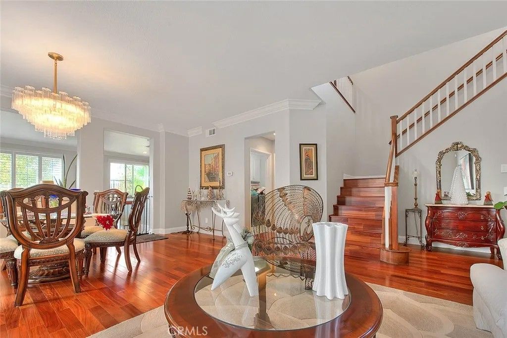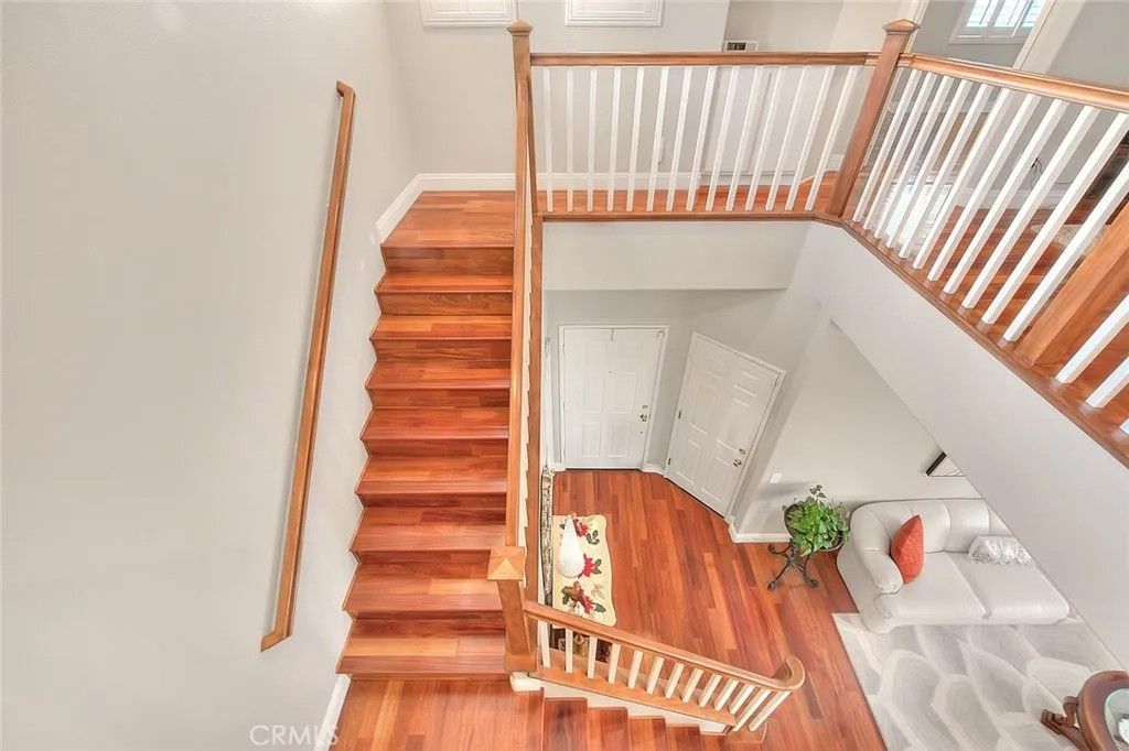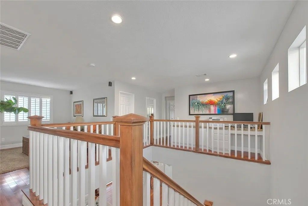 A beautiful, detached Condo/single family resident! A MUST SEE! Welcome to this beautiful immaculate 4 bedroom, 2.5-bathroom home located in Canyon Country/ Santa Clarita. Upon entering this home, you will be delighted by the open floor plan with a stunning living room, dining room, family room and luxuriously updated kitchen. Off of the kitchen and family room there is a sliding door leading to the beautiful and serene landscaped back yard with magnificent panoramic views of the canyons, the city lights and the most amazing sunsets. This charming home has many beautiful windows with crisp white plantation shutters throughout, freshly painted neutral color walls and lovely wood flooring. Going up the beautiful staircase, you will find a large primary bedroom with a balcony over the back yard, with incredible views of the canyons the city lights and the sunsets as well. There is a large primary bathroom with double sinks connected to the primary bedroom. There are two other spacious bedrooms upstairs, another full bathroom, a lovely cozy loft that can be a 4th bedroom and a large built in desk work area that can be a perfect workspace for a home office. This home has the perfect layout to entertain family and friends or to just be at home in a peaceful environment to relax. This single-family residence is considered a detached condo per builder on title. * Chandelier in dining room is excluded from the sale