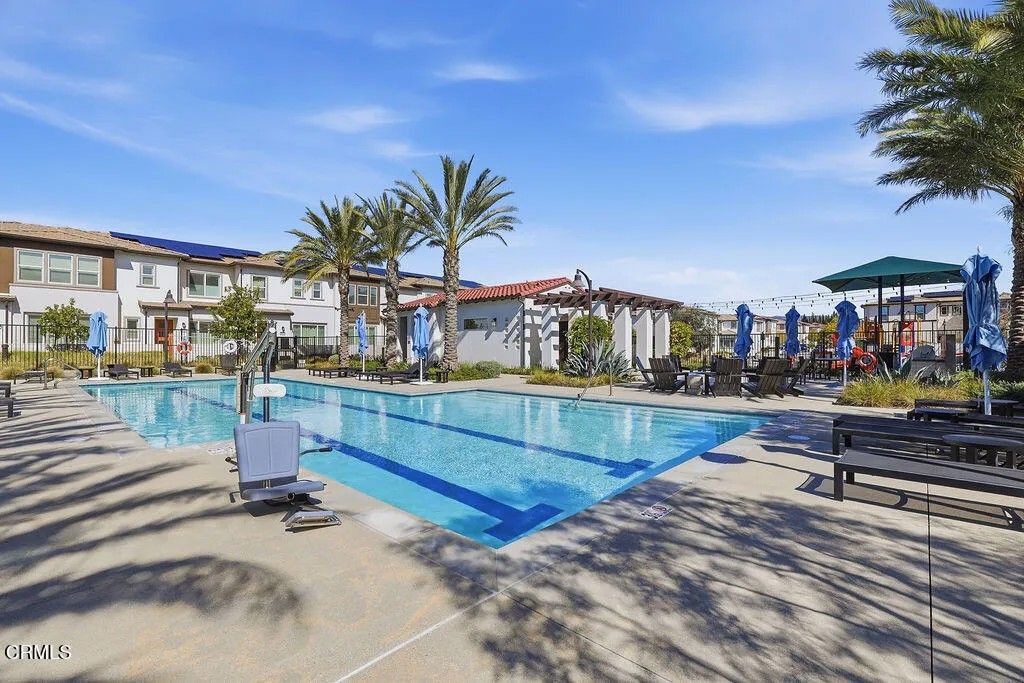 Built in 2022, this move in ready Sycamore Grove home in Central Simi Valley offers modern living with PAID OFF SOLAR, premium upgrades, and an assumable VA loan at 4.625%.Additional features include a whole house water softener, reverse osmosis system with connected ice line, tankless water heater, EV ready outlet, smart home features, and energy efficient design throughout.Inside, a bright open concept layout features brand new luxury vinyl plank flooring, 51/2 inch baseboards, and abundant natural light, creating a clean and elevated feel throughout.The kitchen is a true showstopper with soft close cabinetry, high end GE Monogram appliances, built in 6 burner cooktop, counter depth refrigerator, and a striking blue tile backsplash that adds a custom designer touch.All bedrooms are located upstairs with high end stain resistant carpet in near perfect condition. The secondary bedrooms are generously sized, ideal for family, guests, or a home office. The upstairs hall bath includes dual sinks, while the primary suite offers a spa like retreat with tile finishes, walk in shower, and large soaking tub.The private backyard is finished with pavers and turf, creating a low maintenance outdoor space perfect for relaxing or entertaining.Residents enjoy resort style amenities including a pool, private gated park, shaded playground, bocce court, community garden with gated picnic area, three BBQ areas, and two fire pits, all within a beautifully maintained community with low HOA dues of just $145 per month.The location is exceptional with a direct gated walking path to Trader Joe's, Target, Starbucks, 85C Bakery, HomeGoods, and more, plus convenient access to the 118 Freeway.Newer construction, paid off solar, premium upgrades, walkable convenience, and an assumable VA loan. Opportunities like this are rarely available in Central Simi Valley.'